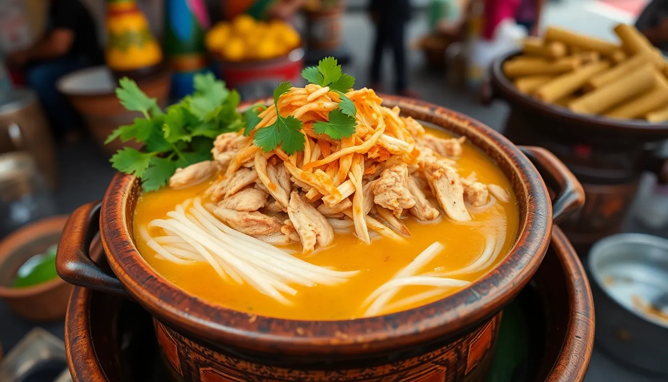 Cooks begin with preparing the broth, simmering turmeric, garlic, fish sauce, chili, and tamarind for several hours. This slow cooking extracts deep flavors and vibrant colors essential to hingagyi. Rice noodles receive special attention; they soak in warm water, reducing firmness while maintaining thickness. Shredded chicken or pork adds protein, cooked separately and mixed into the broth. Herbs like coriander and crunchy garnishes such as fried onions enhance texture and aroma. Vendors often use large clay pots or metal woks over open flames to maintain authentic heat distribution. These methods preserve the dish’s signature taste and reflect the culinary heritage of central Myanmar.